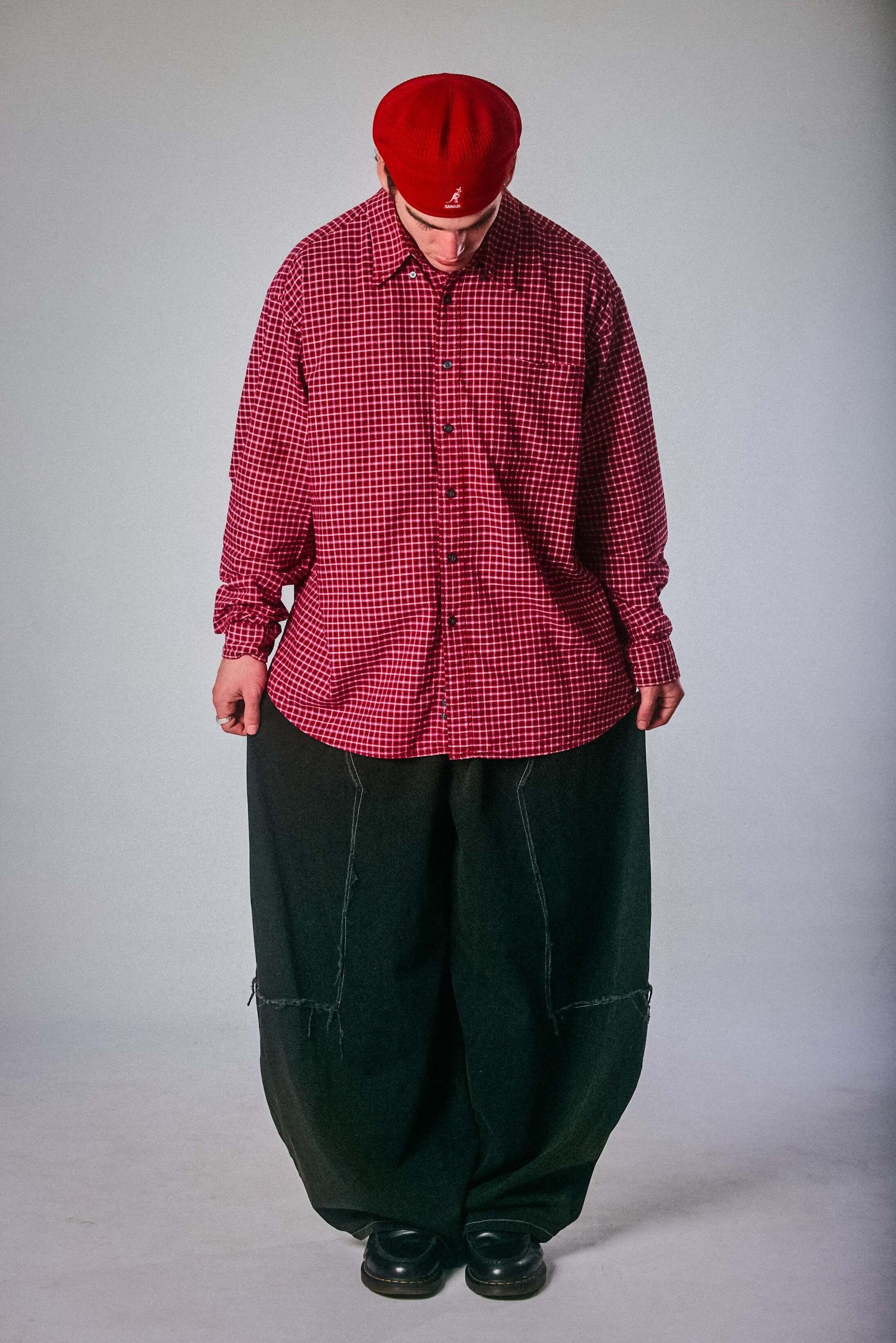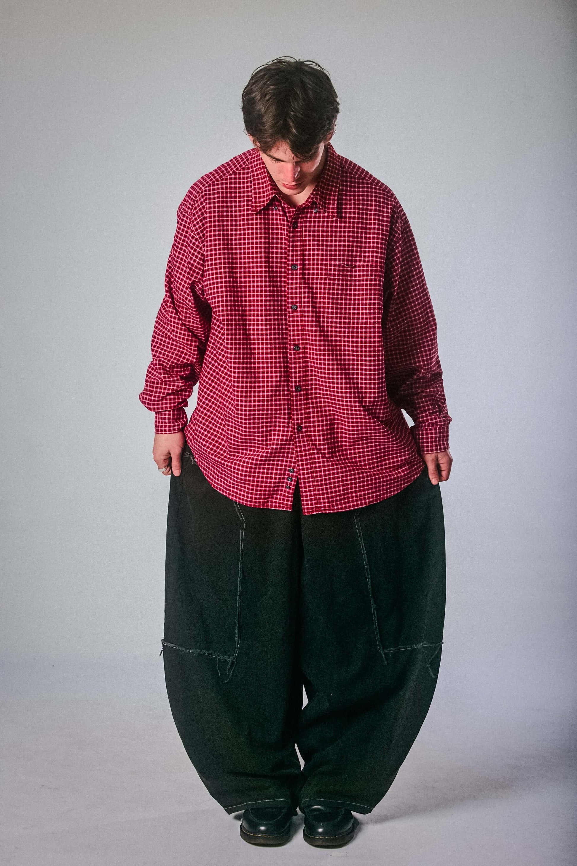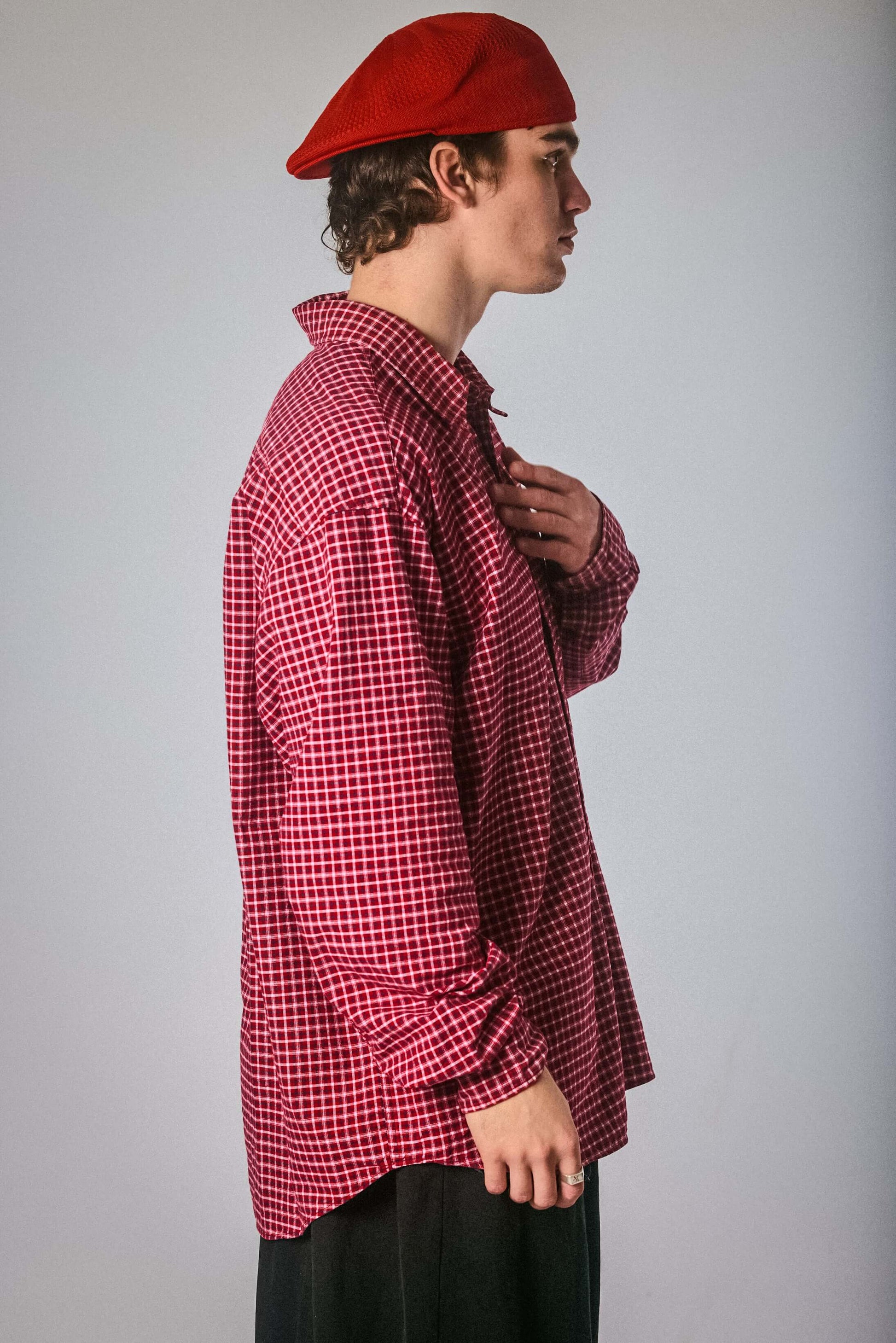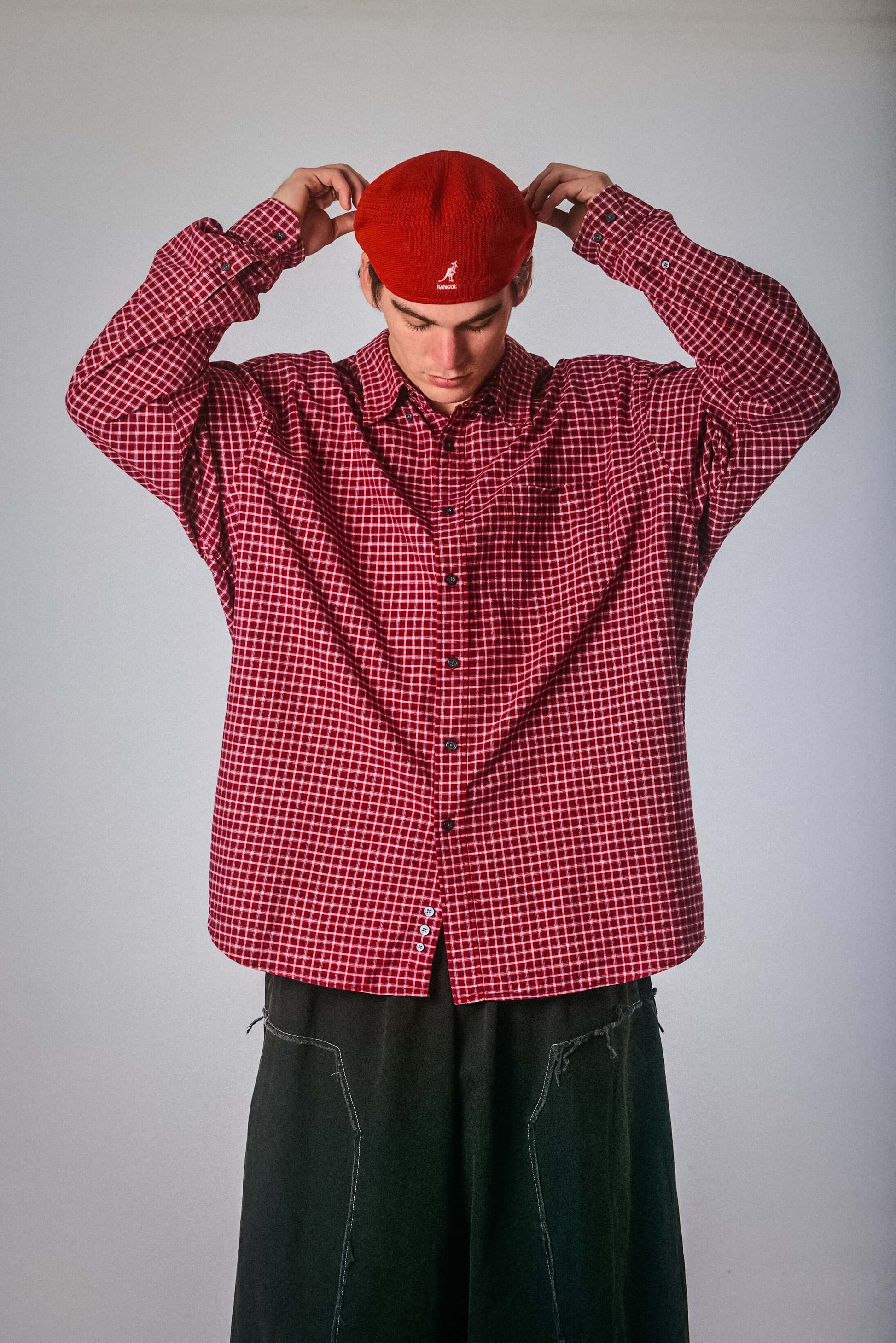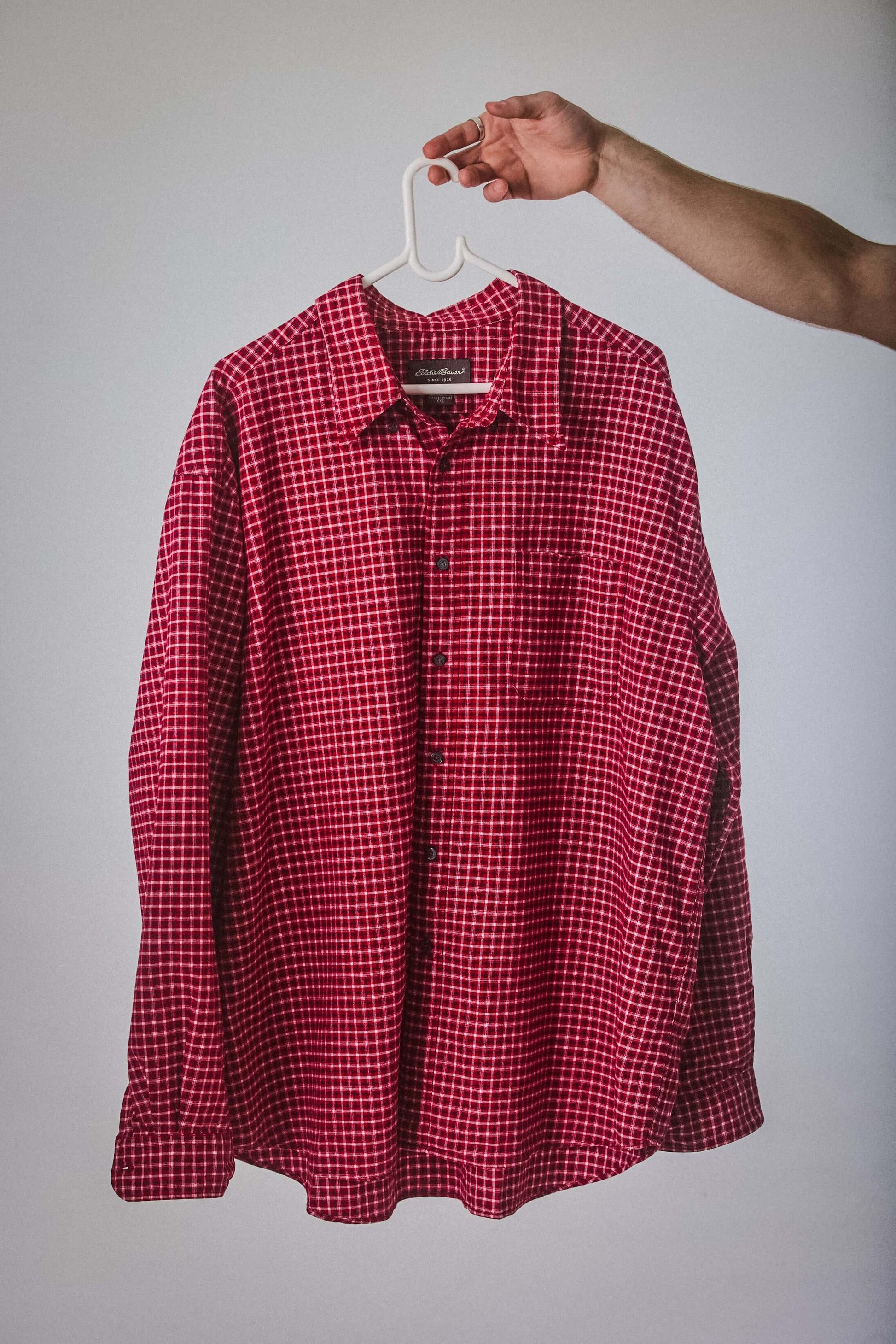 Rich red with micro-check print, this Eddie Bauer button-up brings bold confidence to a classic silhouette. Soft to the touch but loud in energy, it’s the perfect oversized shirt to layer, thrift, and turn heads in.