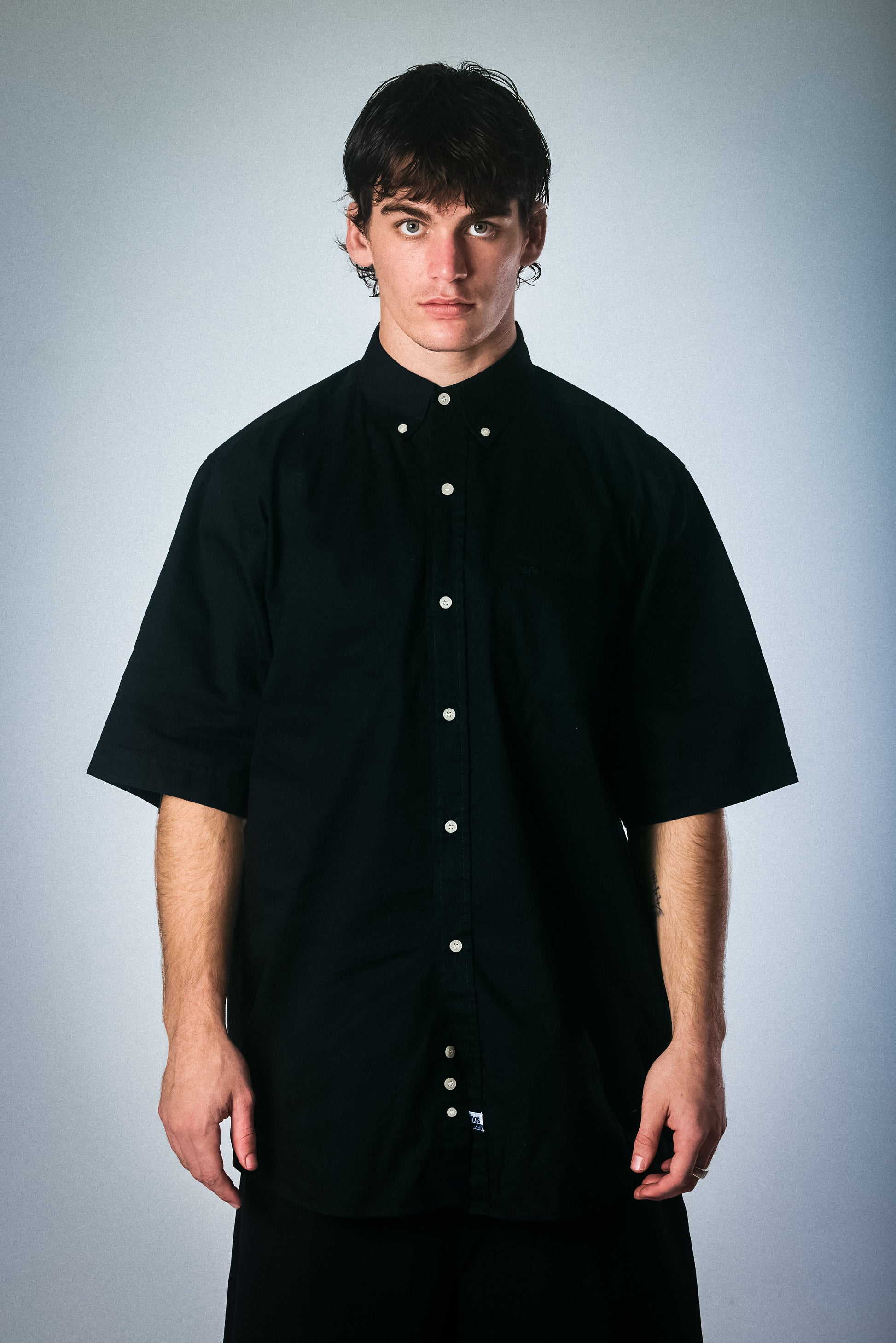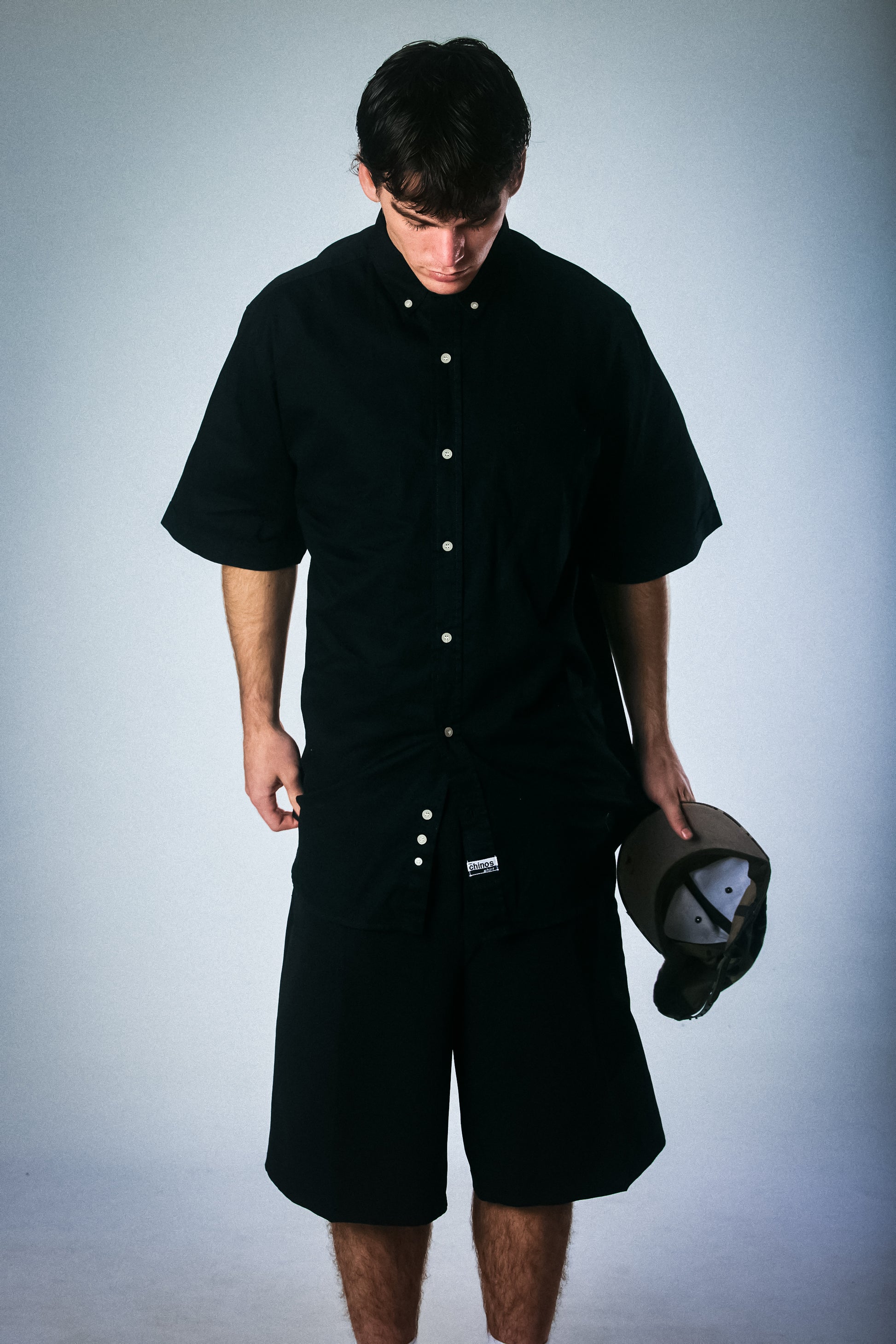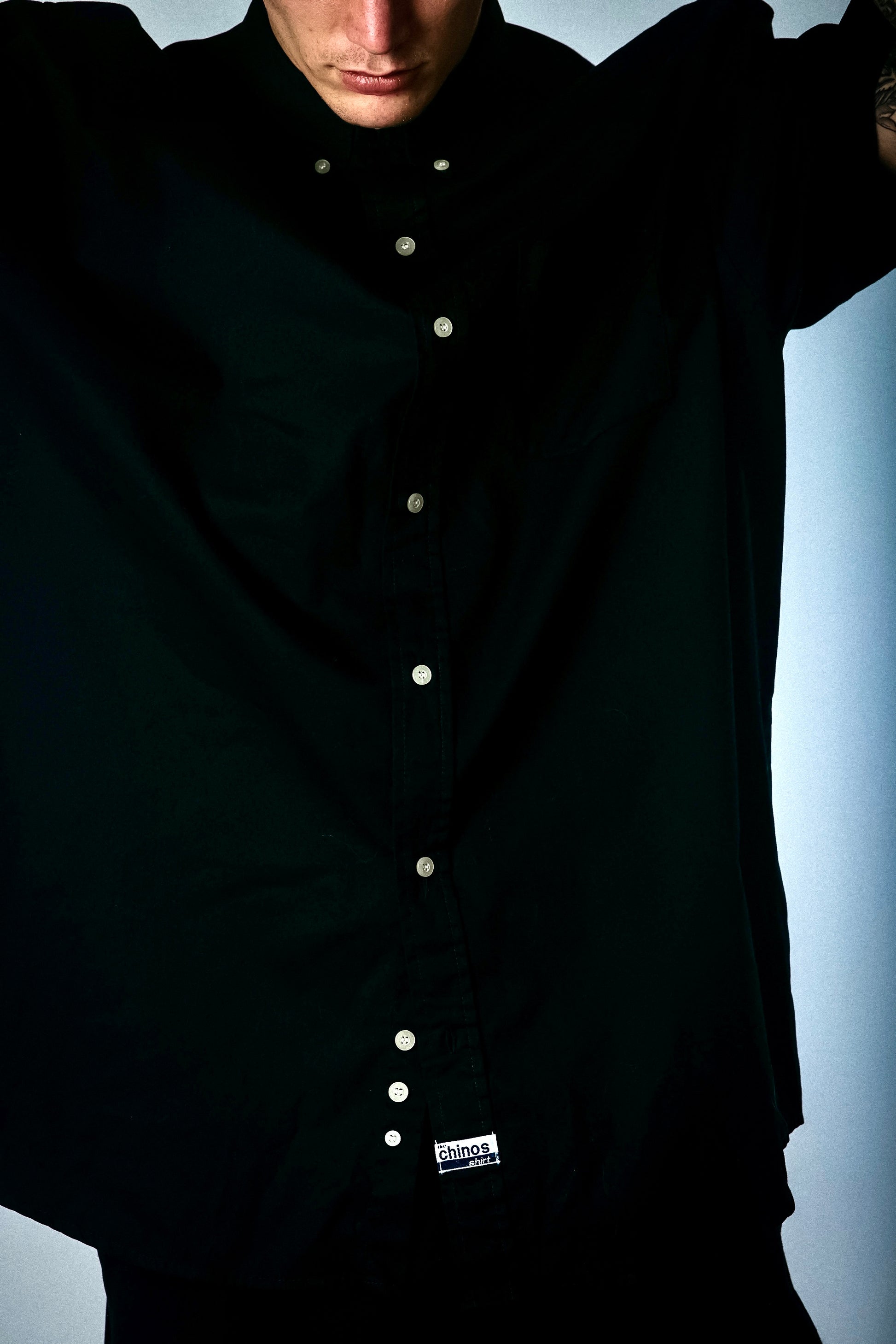 Effortlessly oversized and crisp as hell, this classic black button-up brings minimalism into the spotlight. Featuring a short sleeve cut, structured collar, and bold simplicity—this one hits different when styled with attitude. Branded by Chinos Shirt.