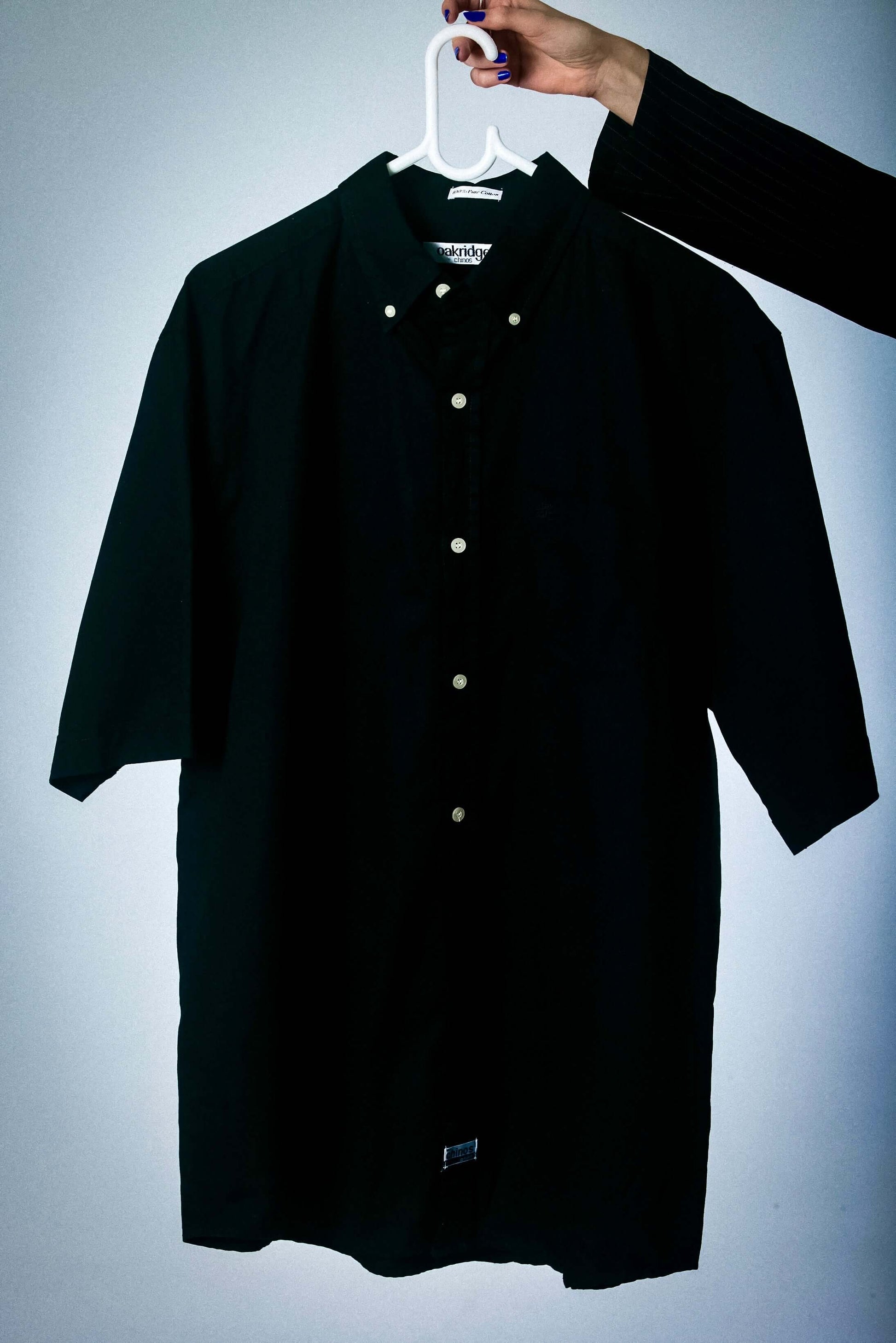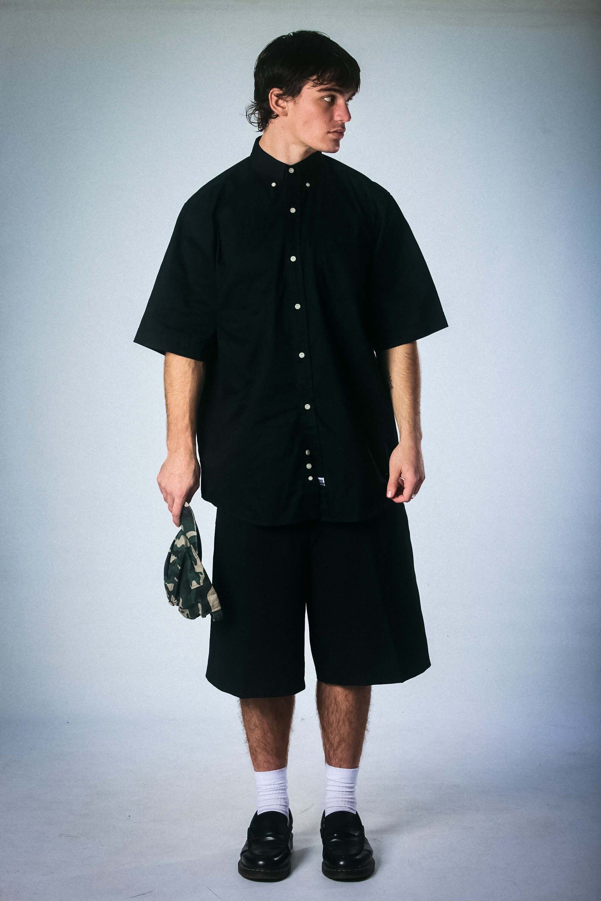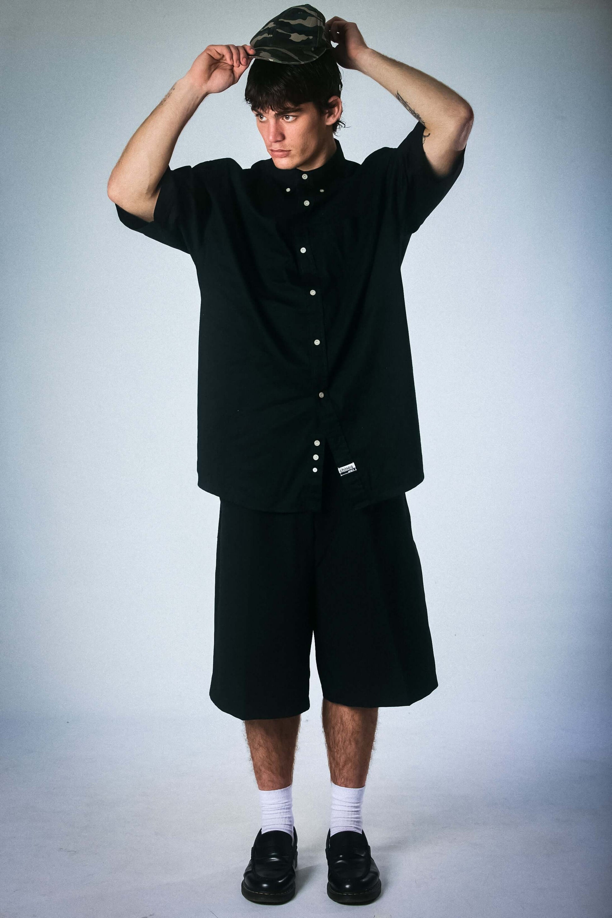 Effortlessly oversized and crisp as hell, this classic black button-up brings minimalism into the spotlight. Featuring a short sleeve cut, structured collar, and bold simplicity—this one hits different when styled with attitude. Branded by Chinos Shirt.