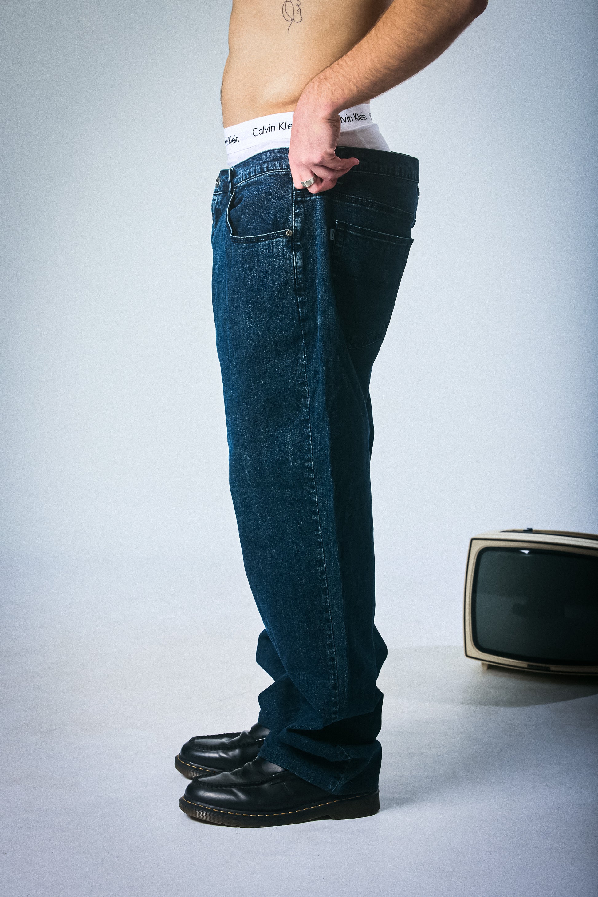 Dark-wash denim with a slouchy straight leg and a vintage edge. The kind of jeans that do all the talking — laid-back, low-key, and loaded with attitude. A little baggy, a lot iconic.