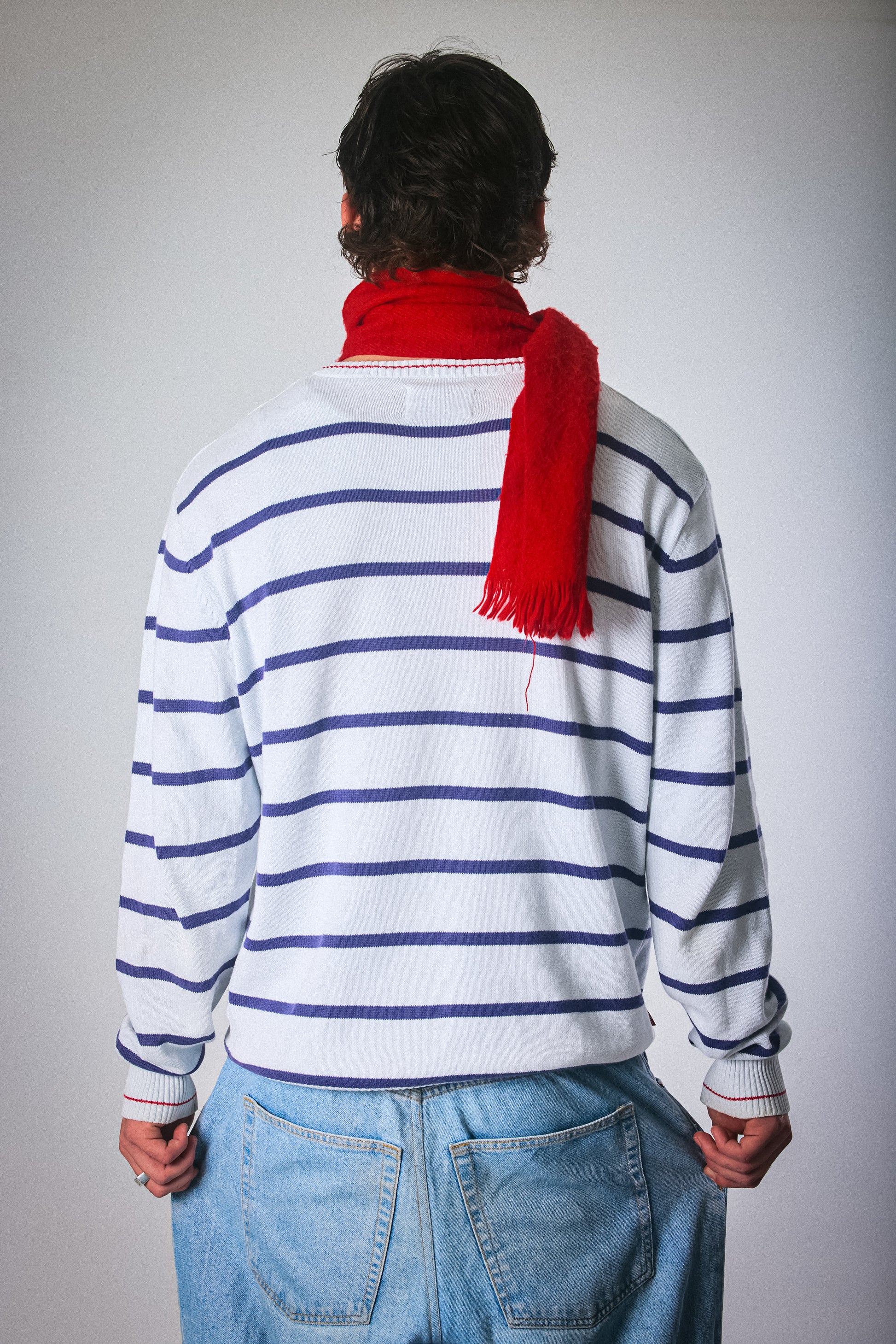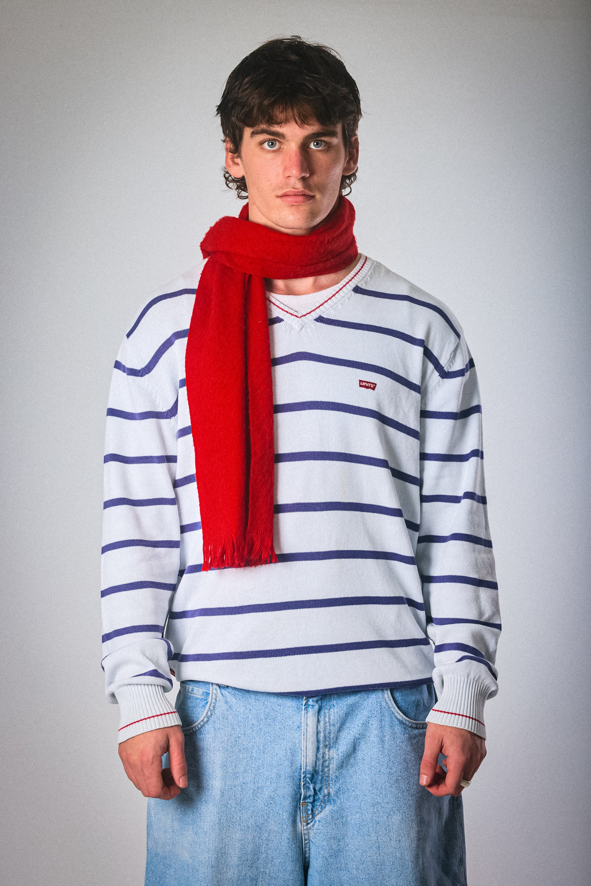 Levi’s knit with nautical energy and a side of serotonin. Fitted but not tight. Soft but not sweet. The red trim? Just enough spice to keep it interesting. Throw it over cargos or a mini — it’ll do the work.
