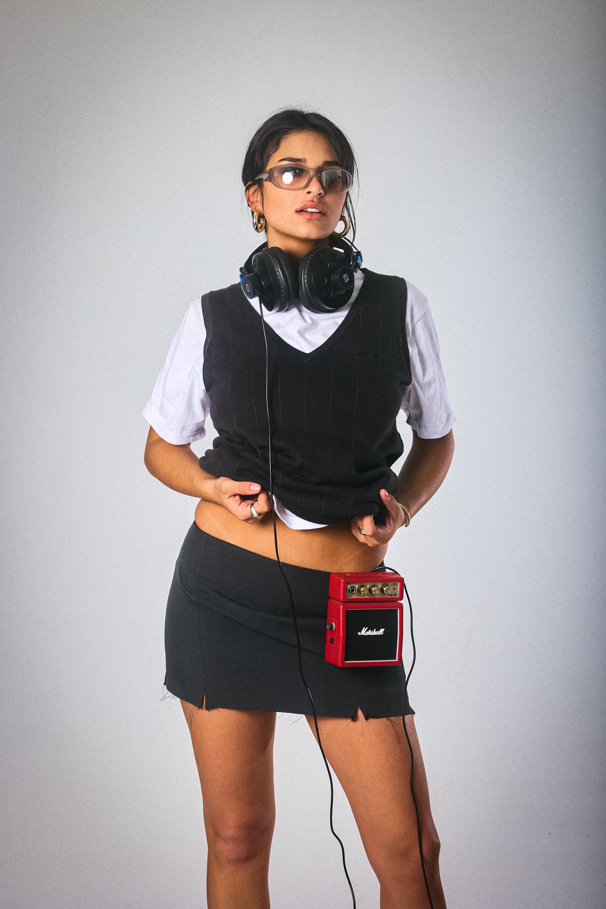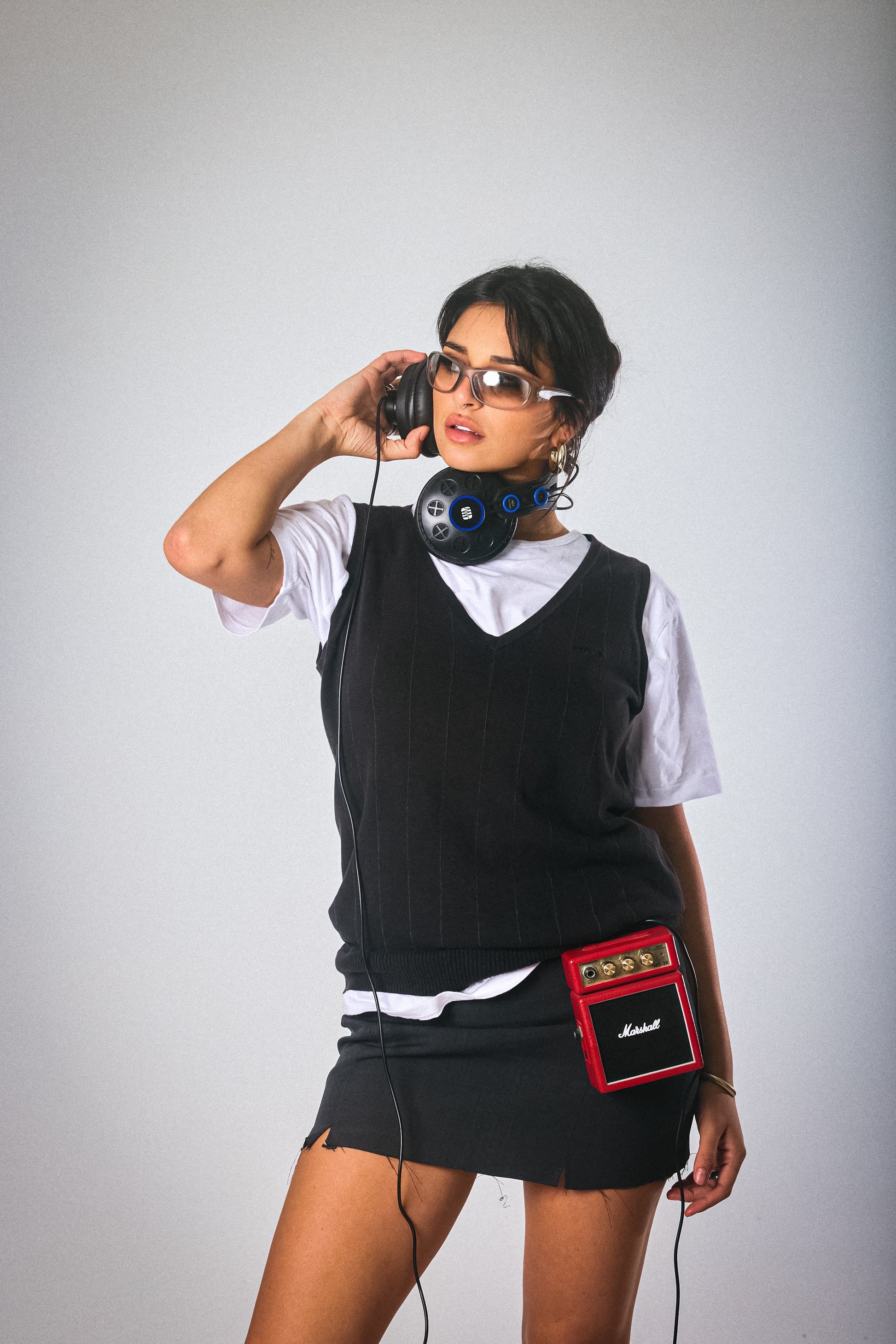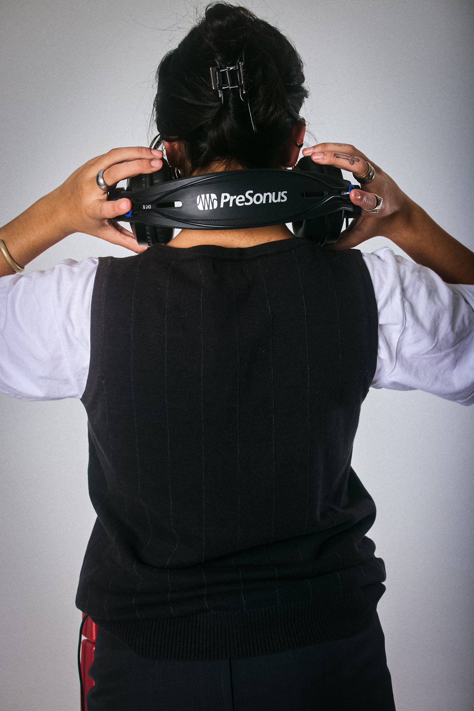 A vintage black sweater vest with subtle vertical ribbing and a sharp V-neckline. This piece by Urban is crafted in a soft, structured knit that layers seamlessly over tees, shirts, or bare skin. Tailored yet minimal, it’s the kind of staple that makes an outfit feel considered without trying too hard. A quiet essential for cool-season styling.